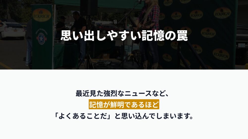 それは、思い出しやすい記憶の罠にはまっていたからです。