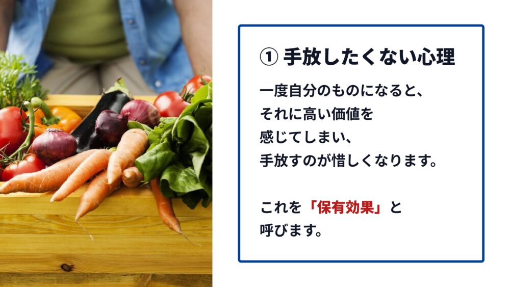 私が激しく後悔した理由の一つ目は、保有効果と呼ばれる心理です。