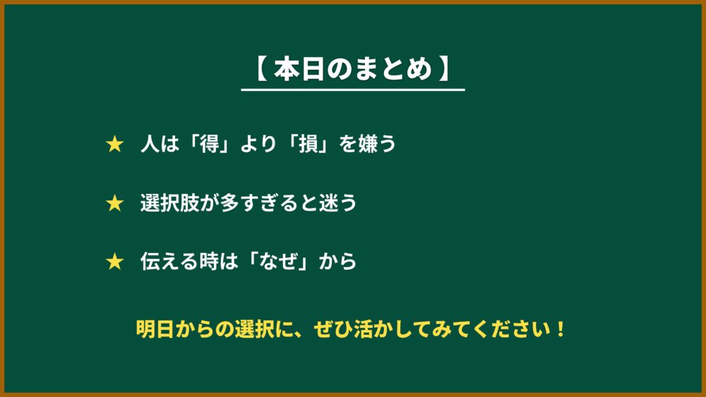 人間は得よりも損を嫌い、選択肢が多すぎると迷って行動できなくなります。