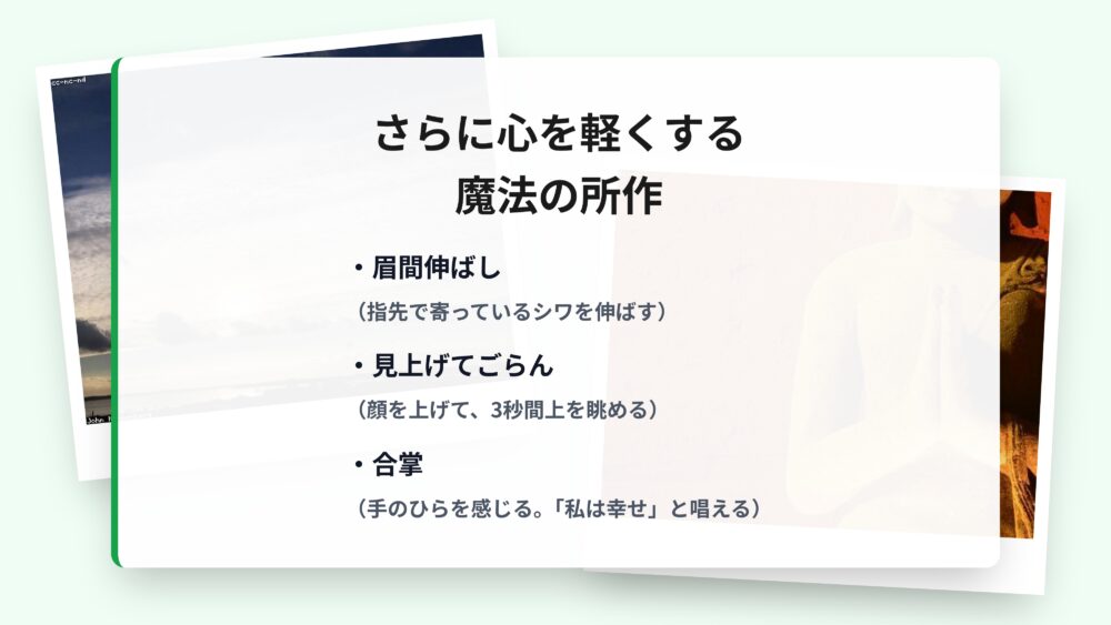 さらに、心を深く落ち着かせるための、ちょっとした魔法のような所作もあります。