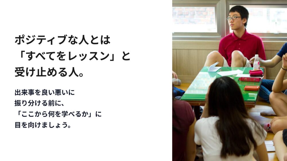 あらゆる物事から学びを吸収しようとする姿勢こそが、ネガティブから抜け出す鍵なのです。
