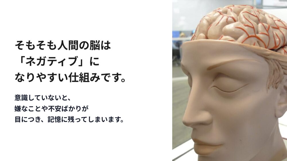 一つ目は、脳は放っておくとネガティブになりやすいという前提を知ること。