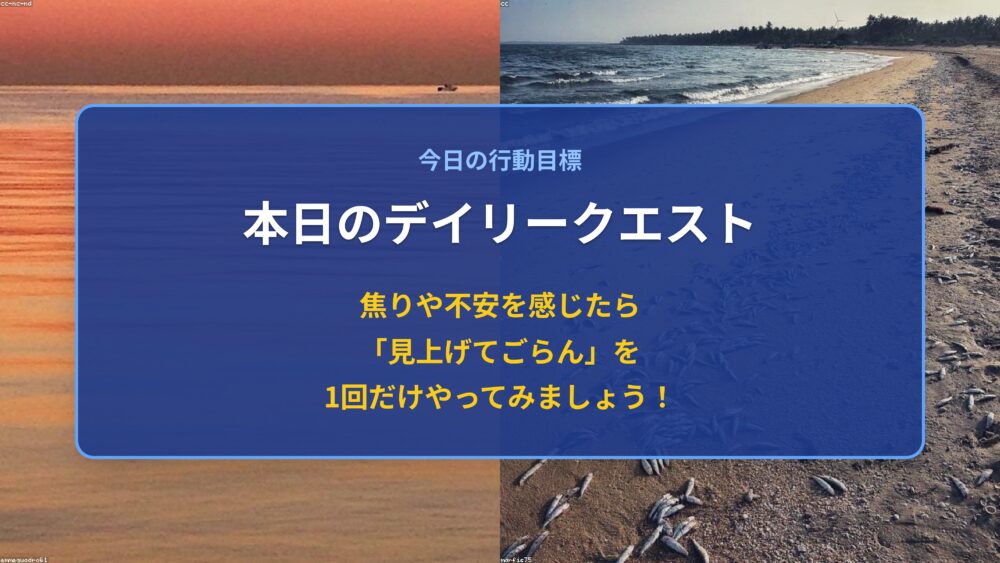 今日、もし焦りや不安を感じることがあったら、見上げてごらんのアクションを1回だけやってみましょう。