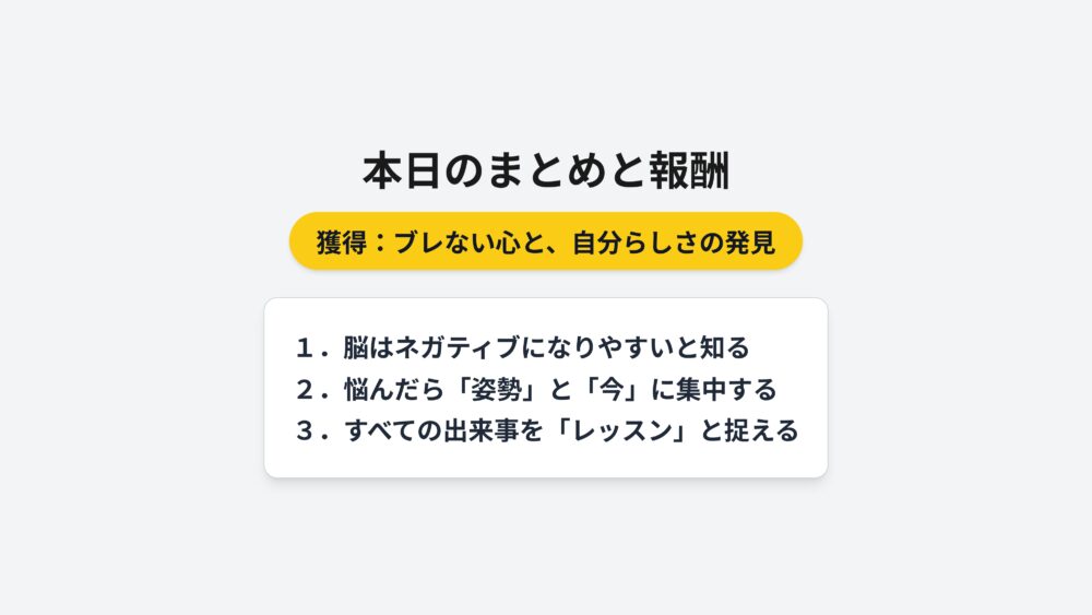 これで、ブレない心と自分らしさを手に入れる準備は完全に整いました。