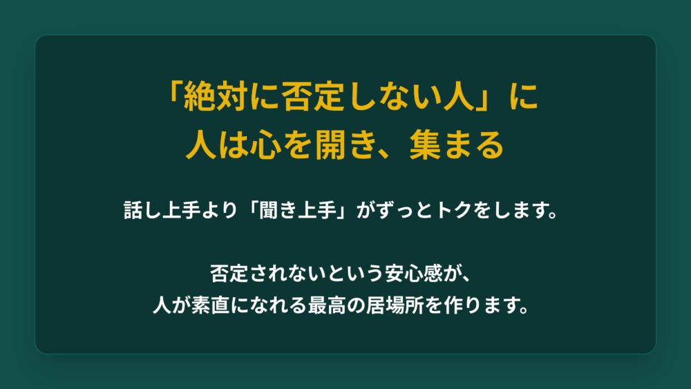 だからこそ、絶対に否定しない人として相手の心にインプットされることが重要なんです。