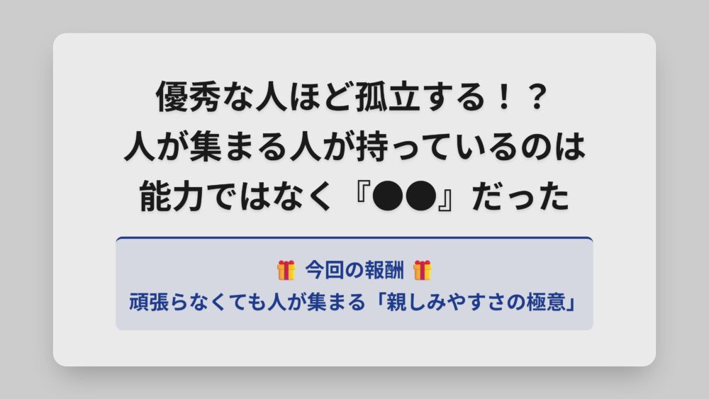 実は、人が本当に集まるのは、隙のない優秀な人ではなく、親しみやすさを持つ人だったんです。