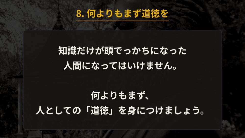 知識を得る前に、まず人としての道徳を重んじることが全ての土台になります。