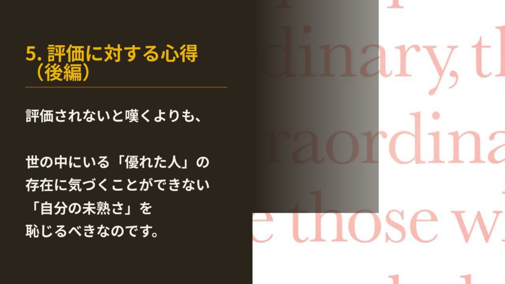 認められないことを嘆くよりも、優れた他人に気づけない自分の未熟さを、恥じるべきなのです。