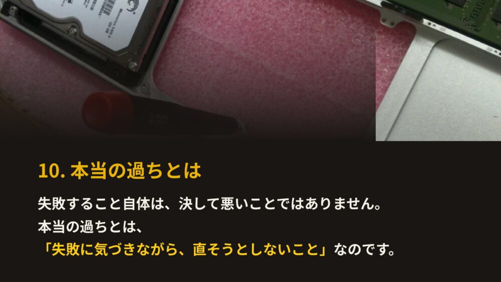 失敗から逃げずに正面から向き合い、改善していくプロセスの中にしか、本当の成長はありません。