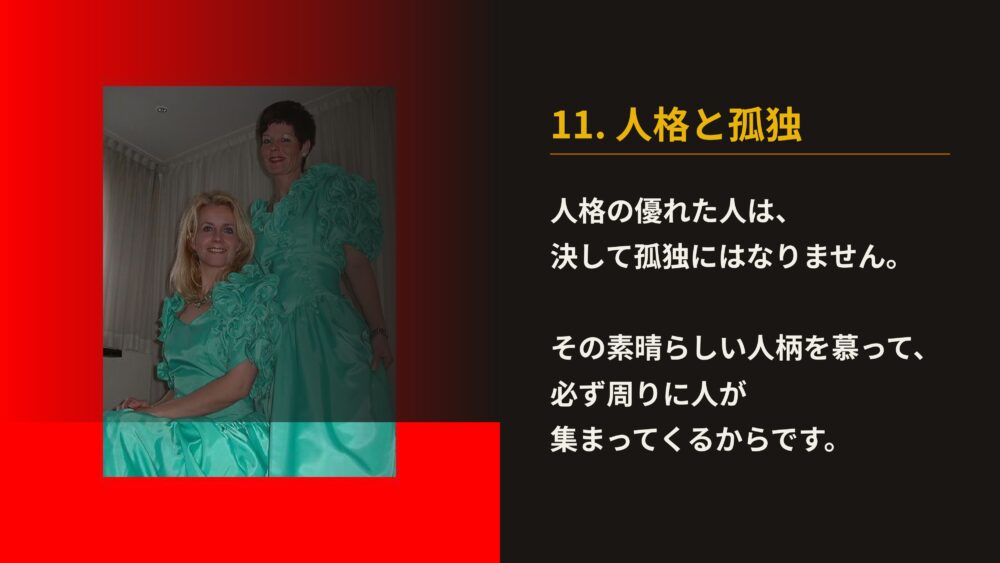 自分の過ちを素直に認め、常に謙虚に学び続ける人格の優れた人は、決して孤独にはなりません。