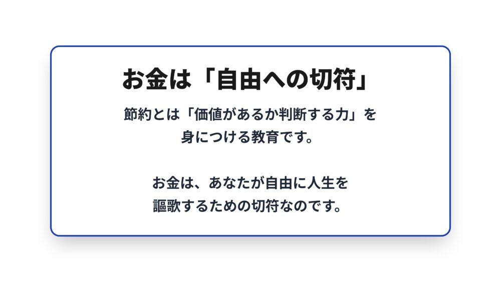 お金とは誰かに見栄を張るためのものでも、一瞬の快楽をえるためのものでもありません。