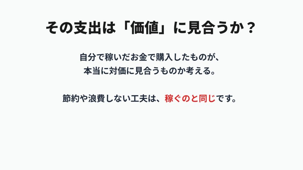 物を大切にすることも、無駄な浪費をしない工夫をすることも、本質的には自分でお金を稼いでいるのと同じ価値があります。