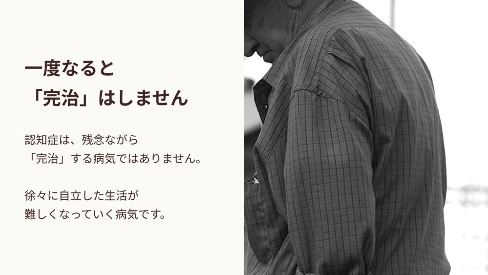 それは認知症という病気が、一度なってしまうと完全に治すことはできないということです。
