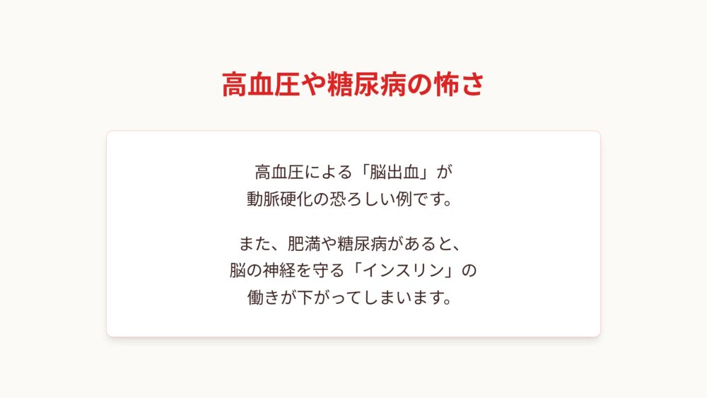 血管が硬くなると脳へしっかりと栄養を届けることが難しくなり、脳を守る力がどんどん弱まっていってしまいます。