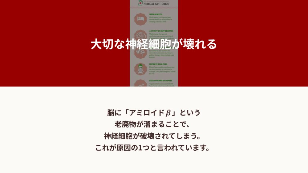 そのゴミが長い時間をかけて増えていくと、やがて大切な神経の細胞を壊し始めてしまいます。