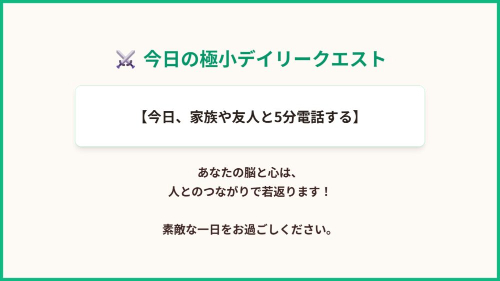 あなたのレベルを確実に上げる、今日の極小デイリークエストです。