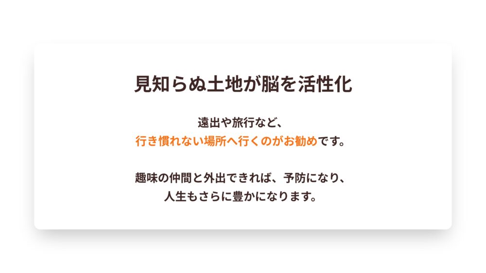 では、さらに脳を喜ばせるためにはどのようなお出かけが効果的なのでしょうか?