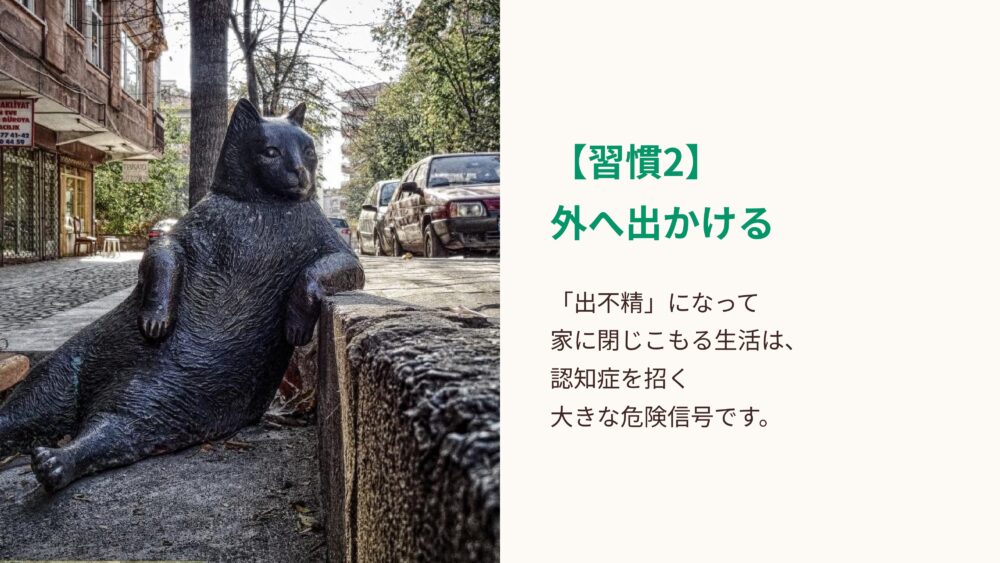 実は出不精になって家に閉じこもる生活は、認知症を招く非常に大きな危険信号なのです。