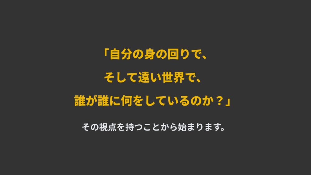 自分の身の回りで、そして、はるか遠い世界で、誰が誰に何をしているのか?