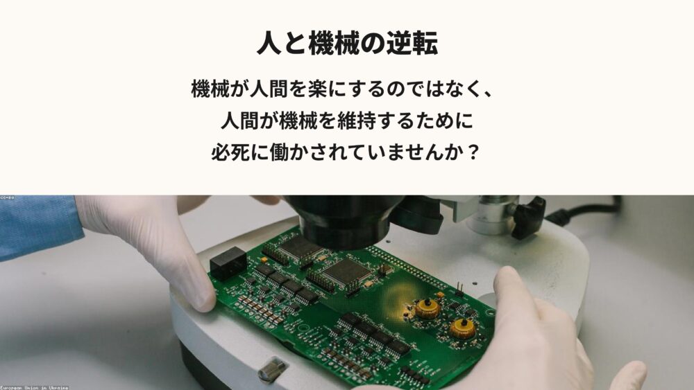 むしろ、人間の方が、最新のシステムや機械を維持するために、必死に働かされているように見えませんか?