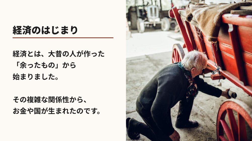 さて、そもそも経済やお金は、どのようにして生まれたのでしょうか?