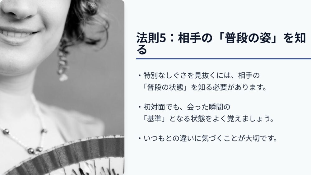 第五の法則は、相手の普段の姿を知ることです。
