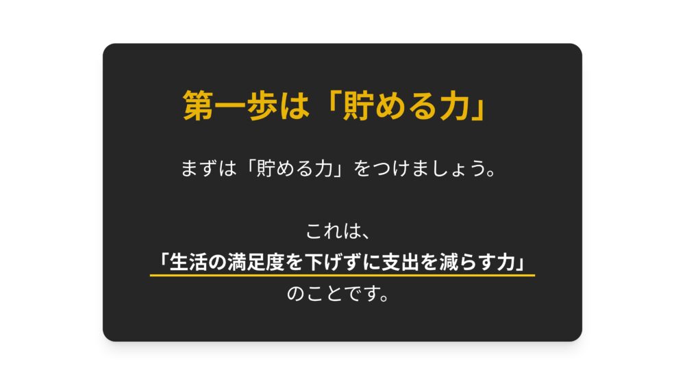 絶対に最初に取り組むべきなのは、貯める力です。