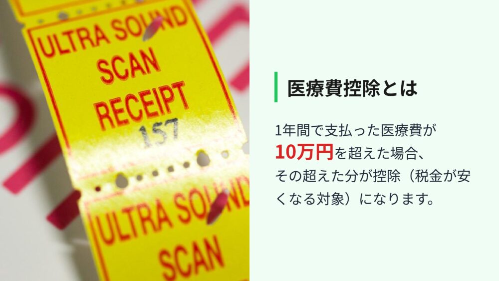 これは、一年間に支払った医療費が10万円を超えた場合、その超えた金額分だけ税金が安くなる対象になるというものです。