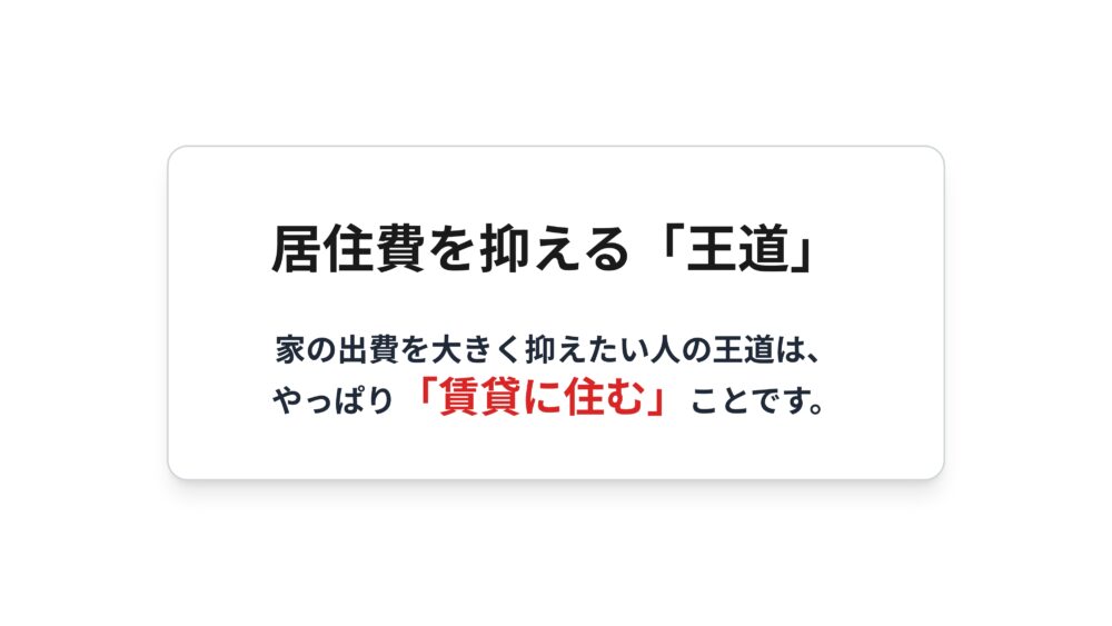 居住費を大きく抑えたいなら、王道はやはり賃貸に住むことです。