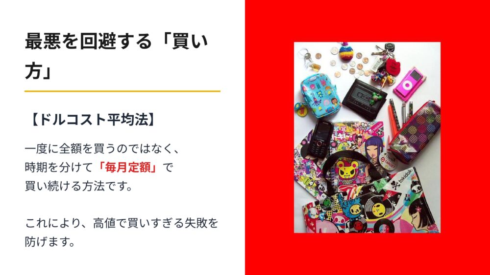 そこで最悪の失敗を回避するための買い方が、ドルコスト平均法です。