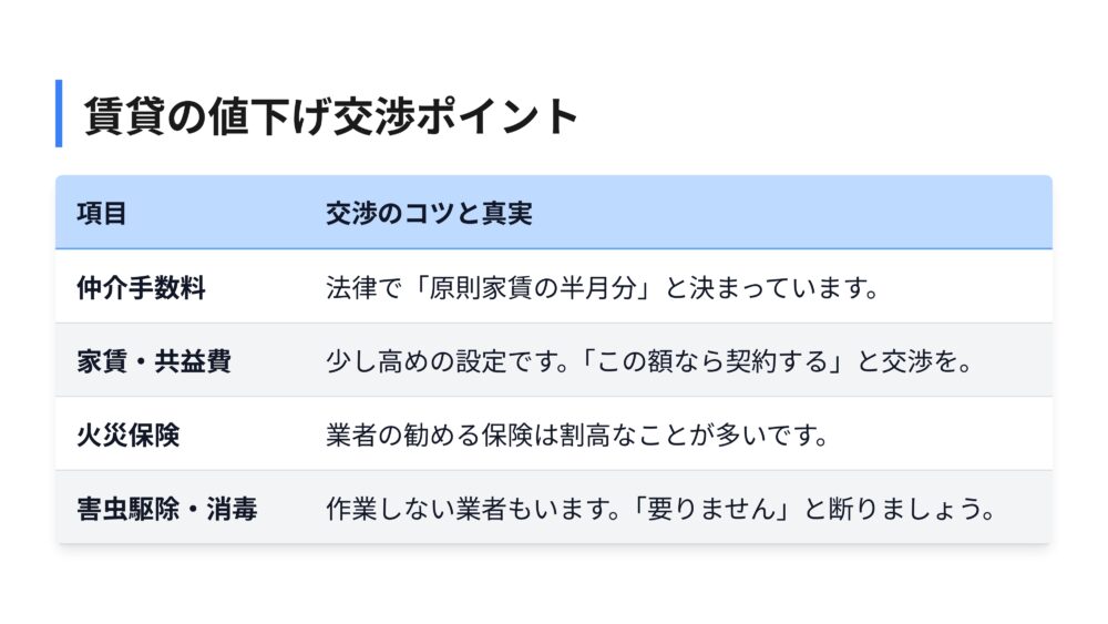 家賃や共益費も、最初から交渉されることを見越して、少し高めに設定されていることが多いんです。