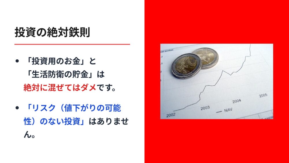 それは、毎日の生活を守るための貯金と、投資に使うお金を絶対に混ぜないことです。