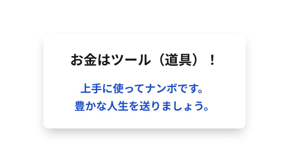 お金はあくまで私たちの人生を豊かにするための、ただの道具にすぎません。
