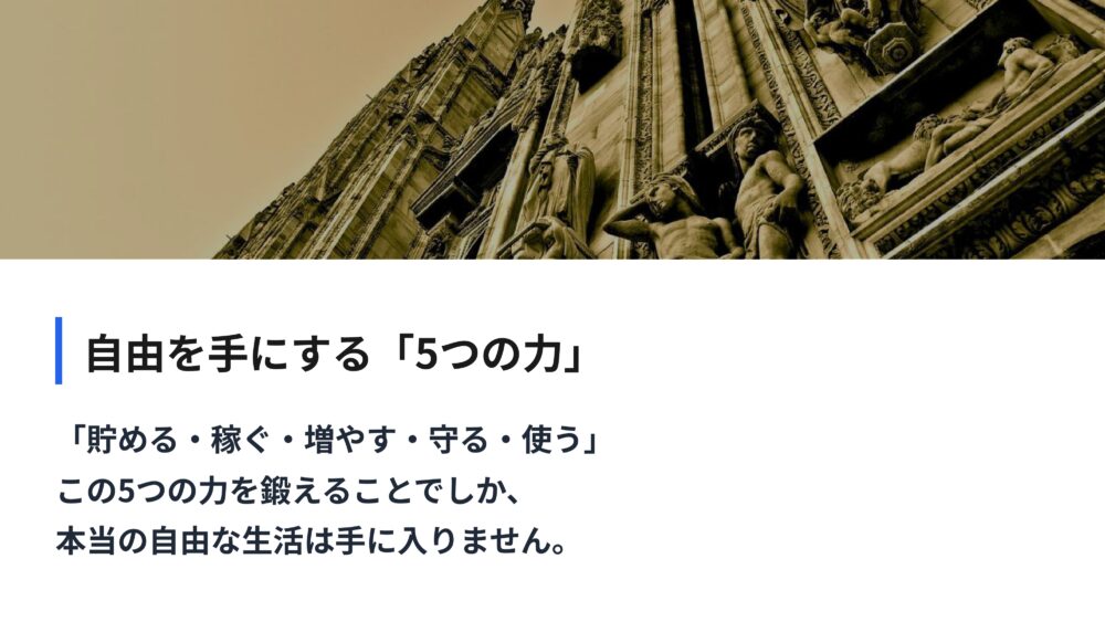 これであなたも、一生お金に困らない5つの力を手に入れましたね。