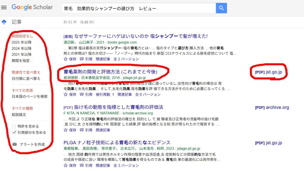 こちらも「育毛 効果的なシャンプーの選び方」を例に検索していきたいと思います。