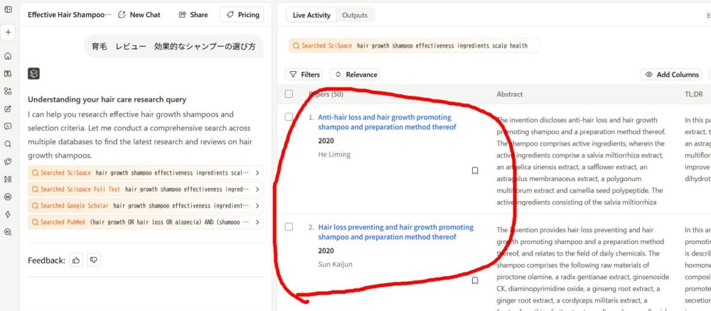 具体例があった方が良いと思うので、今回は「育毛 効果的なシャンプーの選び方」を例に検索していきたいと思います。