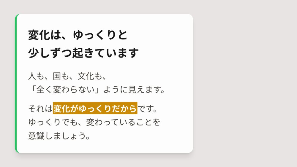 そんな時は、目に見える変化というものは、とてもゆっくりと、少しずつ起きているのだという事実を思い出してください。