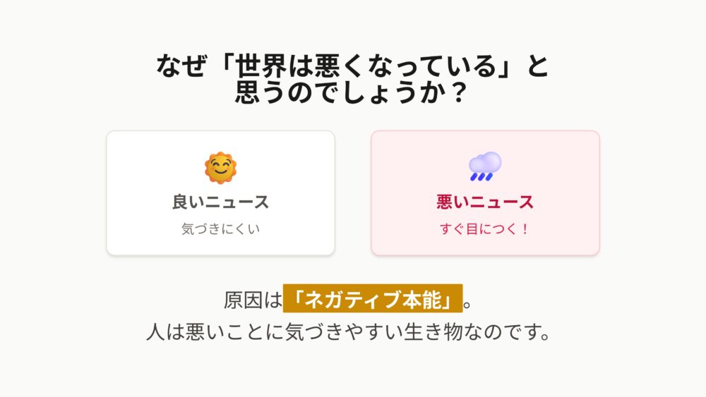 多くの人は、「世界はどんどん悪くなっている」と感じがちです。