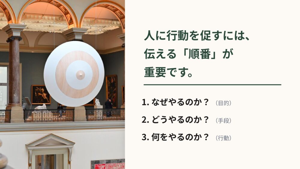 そして最後に、具体的に何をやるのかを伝えるんです。