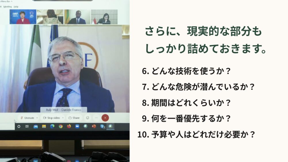 こうして目的や全体像を共有できたら、さらに、もっと泥臭い現実的な問題にも目を向ける必要があるんです。