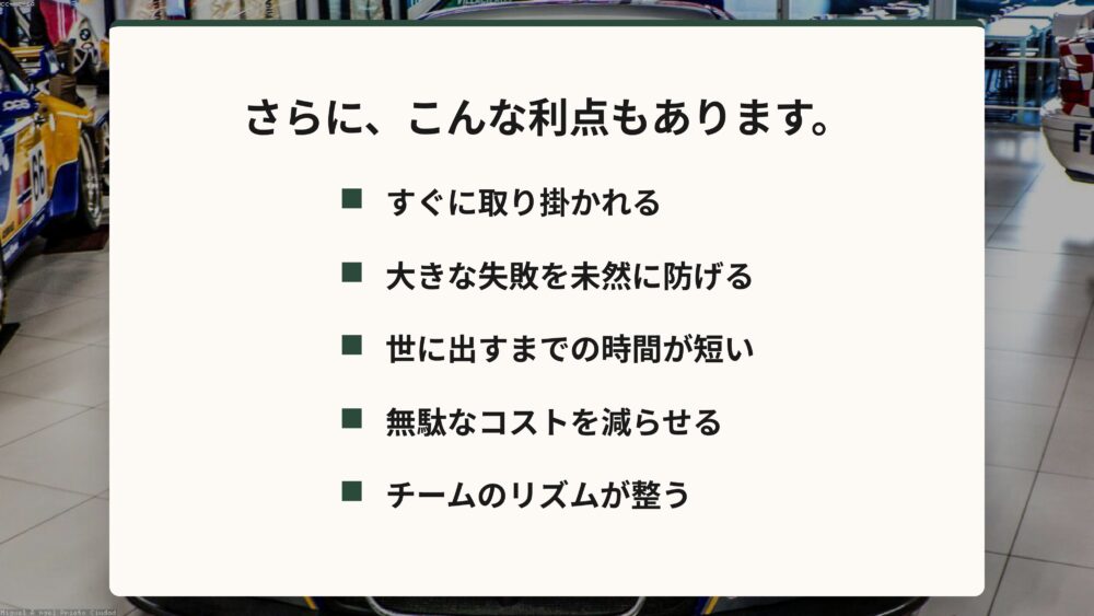 こうして周りを巻き込みながら、最初から完璧を目指さずに、少しずつ柔軟に仕事を進めていくやり方には、実は驚くべきメリットがたくさんあるんです。