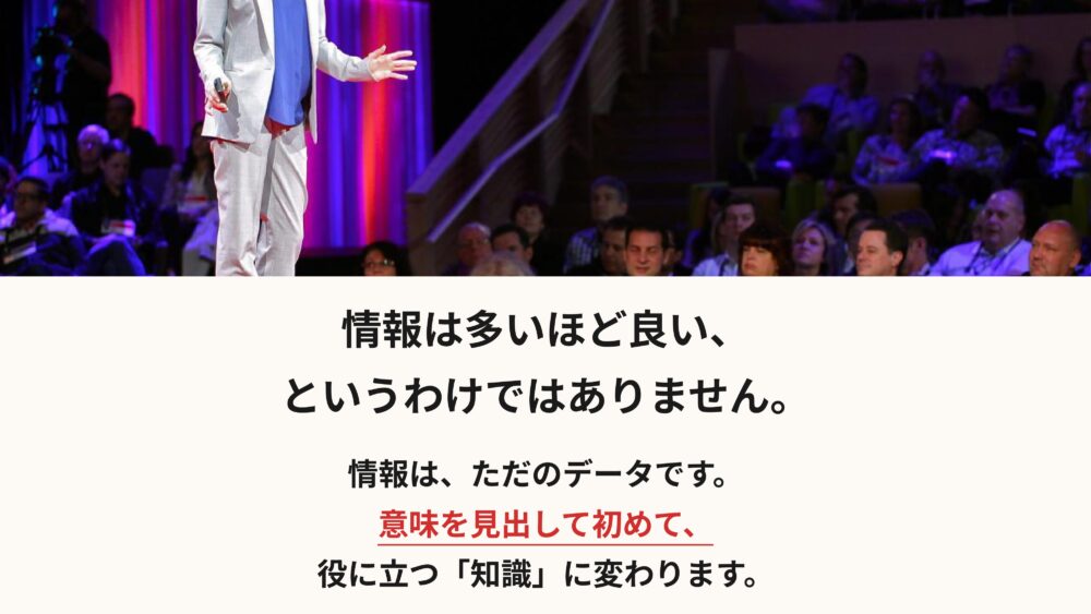 そうやって意味を見出して初めて、情報は強力で役に立つ知識へと生まれ変わるんです。