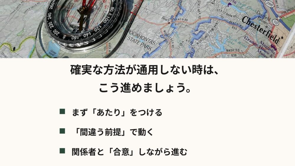確実な方法が通用しない時は、考え方をガラッと変える必要があります。