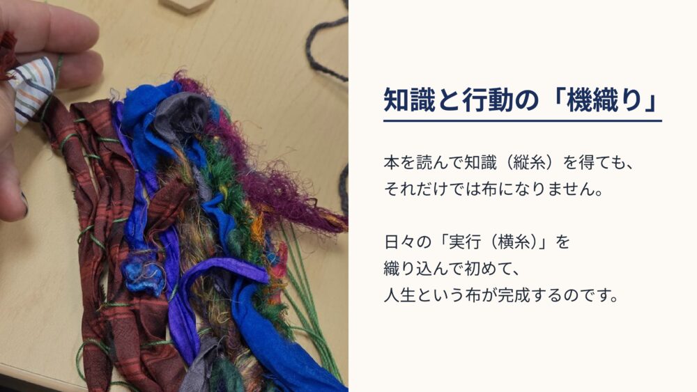 頭で理解する縦の糸だけでなく、実行という横の糸を通すことを意識してください。