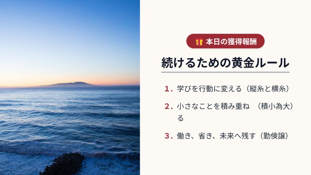 これであなたも続けるための黄金ルールという強力なアイテムを手に入れましたね。