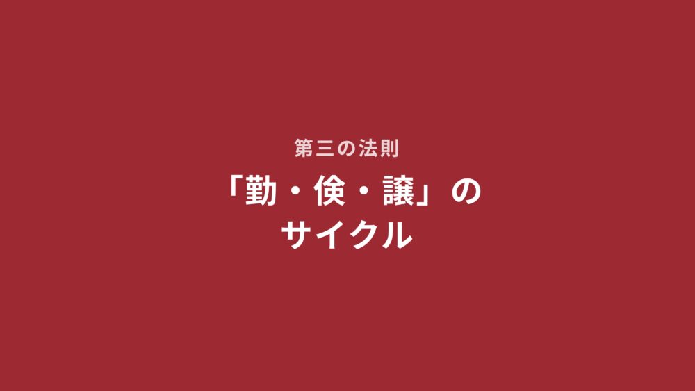 第三の法則は勤倹譲のサイクルを回すという教えです。