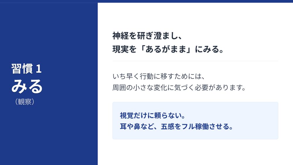 自分の思い込みを捨てて、今目の前で何が起きているのかを、静かに、そして鋭く感じ取ることが、すべての始まりなのです。