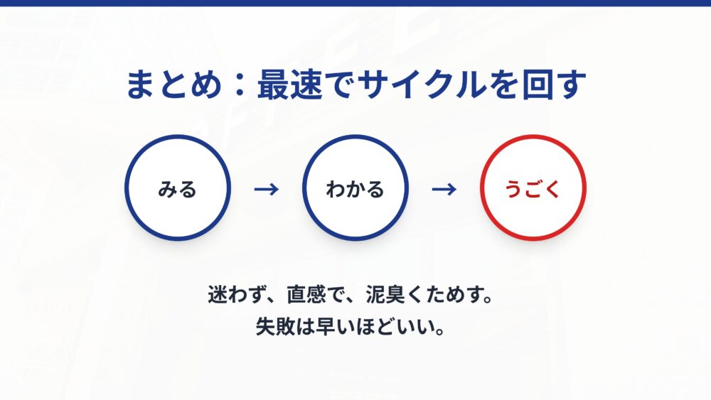 この、みる、わかる、うごく、というサイクルを、何度も何度も繰り返すこと。