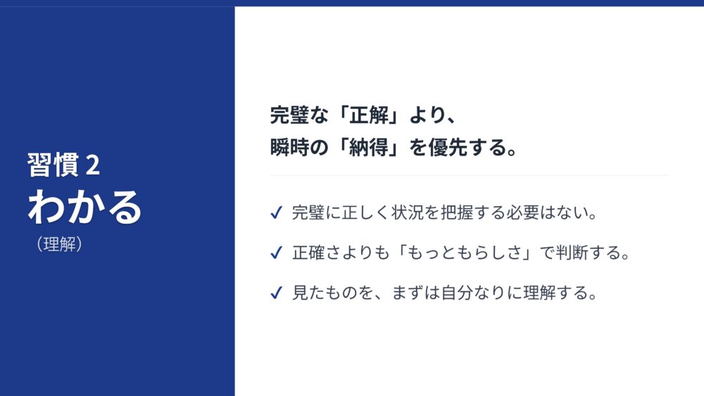 不完全でもいいので、瞬時に自分なりに納得すること。
