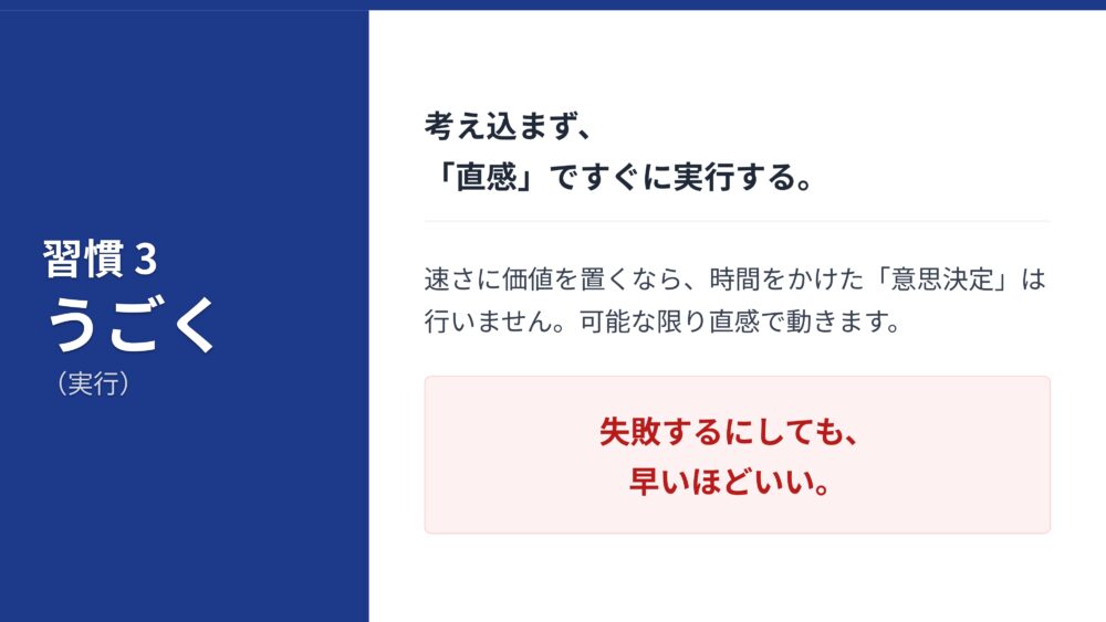 この速さを実現するために、心に刻んでおきたい大原則があります。